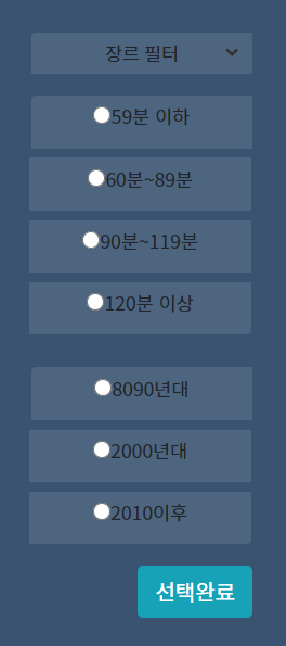 장르 필터는 펼치면 총 19개의 장르가 나타나고, 중복 체크가 가능하다.