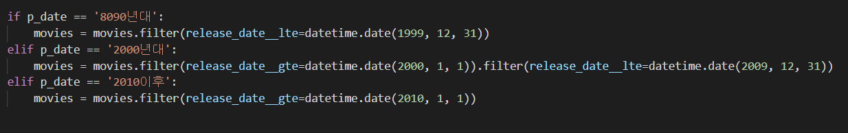 필터는 말 그대로 django의 orm 'filter' 기능을 사용하여 구현했다.