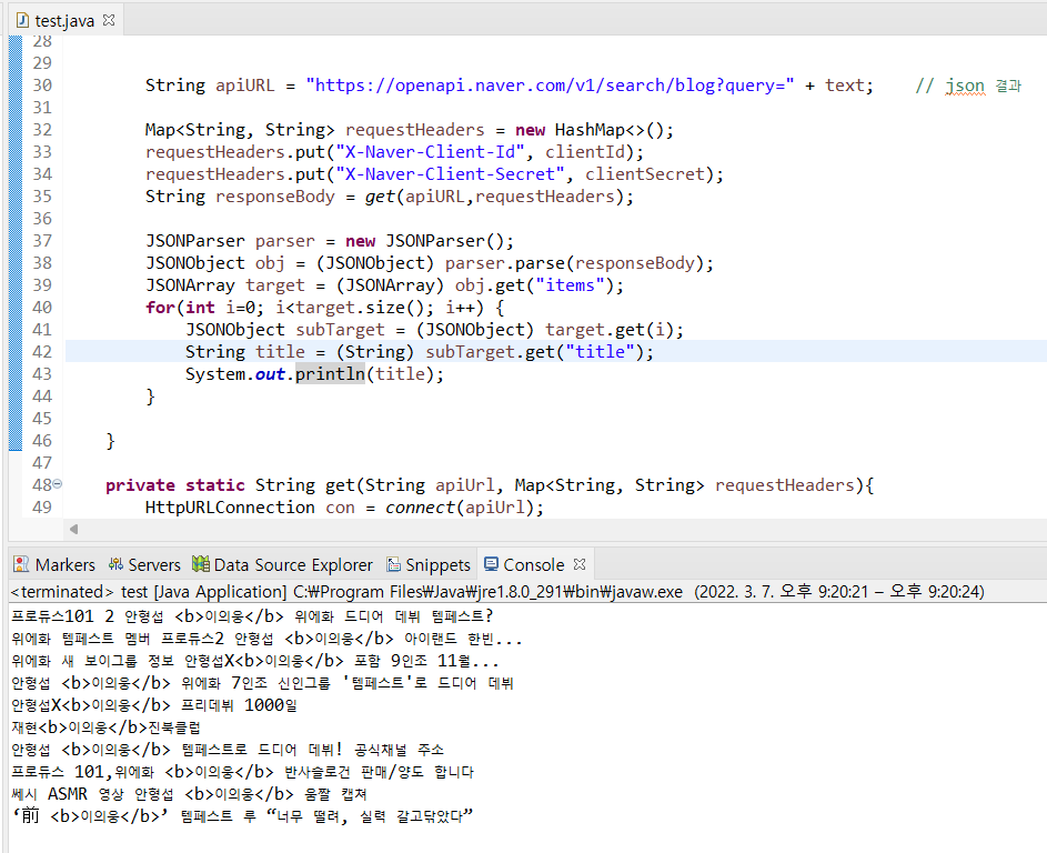 1. 작성한 java 코드가 제대로 동작하는지 실행시켜본다.