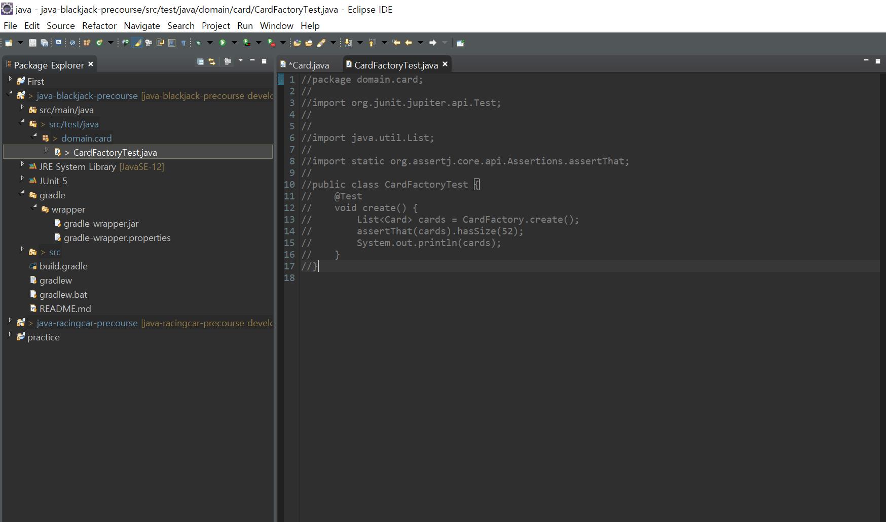 일단 3주 차 미션을 까 보려고 github fork 후에 eclipse에서 clone 하였다.