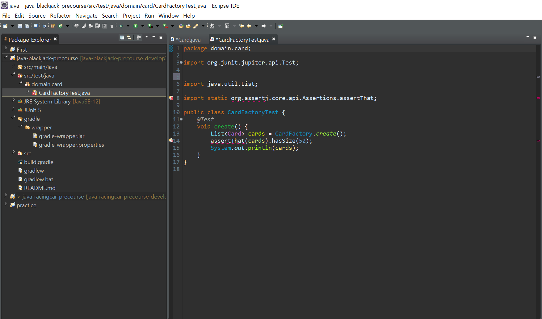 java project로 재설정해주고 나니 test 패키지에서 오류가 보였다.